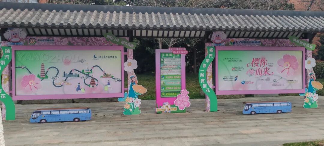 春日扬州鉴真路樱花大道繁花盛放,沿线全新打造的樱花主题公交站台,成为市民游客打卡的春日网红点位。